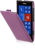 STILGUT Leder-Hülle kompatibel mit Nokia Lumia 520 vertikales Flip-Case, Purpur