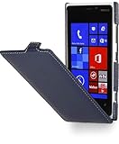 STILGUT Leder-Hülle kompatibel mit Nokia Lumia 920 vertikales Flip-Case UltraSlim, Navyblau