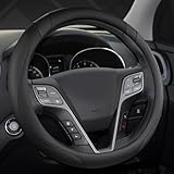 - Diese aus weichem schwarzes Kunstleder gefertigte Lenkradabdeckung zeichnet sich durch eine weiche Textur, Haltbarkeit und ein exquisites Aussehen aus. Erhöht den Innenraum Ihres Autos. Perfekte Passform und fügt dem Lenkrad keine übermäßige Masse hinzu.