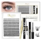 - 【DIY Wimpern Extension Kit】QUEWEL DIY Wimpern Extensions Kits, 144 Wimpern Cluster, 2 verschiedene Stile. Black lash bond&seal, eine goldene Pinzette für Wimpernhaufen und ein Cluster Wimpernkleber Entferner, speziell für DIY Wimpernverlängerung entwickelt. bequem zu Hause oder auf Reisen zu verwenden, ohne zu viel Speicherplatz in Anspruch zu nehmen.