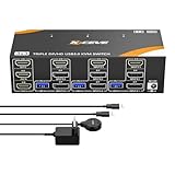 - 【3 Monitor KVM Switches mit 4 USB-3.0 Anschlüssen】 Dreifach Monitor HDMI und 2 DisplayPort KVM Switches mit 4 USB 3.0 Anschlüssen, die Tastatur, Maus, Drucker, Scanner und andere USB Geräte erkennen. USB 3.0 bietet Datenübertragungsgeschwindigkeiten von bis zu 5 Gbit/s, während USB 2.0 nur 480 Mbit/s erreicht. Hinweis: Der USB Eingang muss mit dem Computer verbunden sein, sonst werden Tastatur und Maus nicht erkannt.