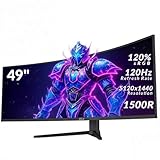 - Immersiver 124,5 cm (49 Zoll) Curved Gaming Monitor: 49 Zoll Bildschirm 5120x1440 DQHD, 120Hz, 1500R, 32:9 Ultra-Wide, AMD FreeSync, 120% sRGB, Höhenverstellbar, HDMI 2.1 & DisplayPort