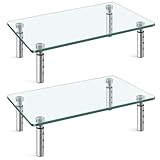 - "Our TV Clear Glass Stand has four rubber pads under the base of the monitor stand can help to maintain stability, which can effectively avoid slips and scratches, and extend its lifespan.