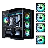 - MUSETEX bringt Ihnen ein großartiges Gaming PC Gehäuse Y6 mit visueller Erfahrung und Montageerfahrung,vorinstalliert mit 6 PWM ARGB Lüftern,von denen 2 einzigartige Seitenlüfter mit Reverse-Blade-Saugdesign für gute Wärmeableitung und Ästhetik sind;mit einem 270° volltransparenten dualen gehärteten Glaspanel für ein breiteres Sichtfeld,können Sie die High-End und coole PC-Hardware des Benutzers und geliebte Puppen und Artefakte ausstellen!