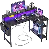 - Schreibtisch mit Steckdosen & 2 Haken: Der L-förmige Gaming Tisch mit LED verfügt über eine eingebaute Steckdosenleiste mit 2 Steckdosen und 2 USB-Anschlüssen, sodass Sie Ihre Gaming-Ausrüstung, Ihr Tablet oder Ihr Smartphone bequem aufladen können. An den beiden angebrachten Haken können Kopfhörer und andere Gadgets aufgehängt werden
