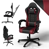 - 【Guter Komfort】 Der Gaming Stuhl mit ergonomischer Form passt sich perfekt der natürlichen Rückenkurve an – ideal für lange Sessions im Homeoffice oder beim Zocken. Das verstellbare Lendenkissen, Kopfkissen (abnehmbar) und die Armlehnen des Gaming Chairs bieten optimalen Support und beugen Verspannungen vor.