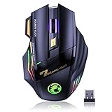 - Kabellose Gaming-Maus, VEGCOO C8 Silent Click Kabellose wiederaufladbare Maus mit bunten LED-Leuchten und bis zu 4800 DPI Einstellbarer 400-mAh-Lithium-Akku für Laptop und Computer