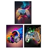 - 【3-teiliges Wandbilder Gaming Set】:Dieses Set beinhaltet 3 bilder gaming zimmer (Controller, Kopfhörer, Spielhände-Design), perfekt für eine abwechslungsreiche Gamer-Zimmer-Deko