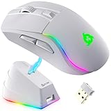 - 【Magnetische Ladestation und Akkustand sichtbar】Ausgestattet mit einer exklusiven Schnellladestation, kann diese Gaming-Maus für 5 Stunden mit 10 Minuten aufgeladen werden. Das Ende der Maus ist mit einem Bildschirm ausgestattet, der die Leistungsstufe anzeigt, so dass Sie jederzeit den verbleibenden Leistungsstand überprüfen können. Darüber hinaus werden die einstellbaren RGB-Lichter der Ladestation Ihre Vorlieben für verschiedene Farben erfüllen.
