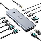 - 【12-in-1 USB C Docking Station für Laptops】Diese laptop docking station unterstützt drei Monitore mit 2HDMI-und einem VGA-Anschluss und liefert gestochen scharfe 4K-Videoqualität.Diese docking station usb c hub ist mit Hochgeschwindigkeits-Datenanschlüssen ausgestattet,darunter 2x USB-A 3.2 (10 Gbps), 1x USB-C 3.2 (10Gbps) und 3x USB-A 2.0. Der USB-C-Anschluss bietet 100W Power Delivery zum schnellen Aufladen Ihrer Geräte.Die docking station dock verfügt außerdem über SD/TF 3.0-Kartenleser mit Übertragungsgeschwindigkeiten von bis zu 170 MB/s.Plug & Play–keine Treiber erforderlich.Sofort anschließen und von einer nahtlosen Multiport-Lösung für alle Ihre Arbeitsplatzanforderungen profitieren.
