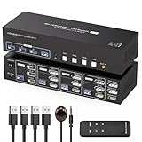 - 【KVM-Switch 2 Monitore 4 Computer】 Mit diesem KVM-Switch für 2 Monitore können Sie 4 Computer oder Laptops mit nur einem Satz kabelgebundener oder kabelloser Tastaturmaus steuern und 4 USB 3.0-Geräte und 2 Monitore gemeinsam nutzen. Er wird häufig im Büro, für Multimedia-Unterricht, Konferenzräume usw. eingesetzt.