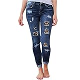 Jeans Damen Fringe Packet Hosen Jeans Hole Baggy Leopard-Frauen Casual-Grain Fashion-Hosen (Blue, S)