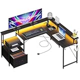 - 【Eingebaute Ladestation für ununterbrochene Power am Computertisch】Ausgestattet mit zwei Steckdosen und zwei USB-Ports bietet dieser Gaming Tisch L Form genügend Stromversorgung für Smartphone, Tablet und andere Geräte. Mit diesem Computertisch bleibt Ihre Ausrüstung immer einsatzbereit.