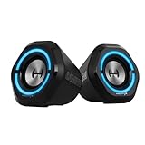 - Atemberaubende RGB-Lichtshow: Diese RGB-beleuchteten Monitorlautsprecher steigern Ihr Audioerlebnis mit leuchtenden Regenbogen-LED-Lichtern, die verblassen oder ständig leuchten. Mit 10 beeindruckenden Beleuchtungsmodi können Sie die Farbe ändern oder sie mit nur einer Berührung ausschalten. Perfekt für Spiele, Filme oder Partys, lässt es Sie die Stimmung einstellen und den Rhythmus spüren