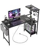 - 【Integrierte Steckdose】 Dieser Schreibtisch ist mit 2 Steckdosen und 2 USB-Anschlüssen ausgestattet. Sie können bequem Ihr Smartphone, Gaming-Geräte oder Bluetooth-Geräte aufladen, während Sie zu Hause arbeiten, lernen oder im Schlafzimmer Computerspiele spielen.
