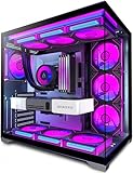 - [Panorama-Design mit 270 ° Breitwinkelansicht] -- Das 270 ° Panorama-Mid-Tower-Gehäuse verfügt über vollständig glasbedeckte Front- und Seitenpaneele, die einen klaren Blick auf die interne Hardware bieten. Diamantschneidwinkel bieten eine transparente und ästhetisch ansprechende Anzeige, die einen einzigartigen visuellen Effekt schafft; bietet großartigen Komfort für Büro-/Gaming-Umgebungen!