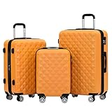 BEIBYE Zwillingsrollen 2066 Hartschale Trolley Koffer Reisekoffer Gepäck M-L-XL-Set (Orangen, Set)
