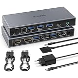 - 【USB 3.0 Umschalter】 Dieser KVM Switch USB C verfügt über vier USB 3.0 Anschlüsse (3 USB-A und 1 USB-C) mit einer Datenübertragungsrate von bis zu 5 Gps. HINWEIS: Bitte stellen Sie sicher, dass das USB-C-Ladegerät an die Stromquelle angeschlossen ist, wenn Sie Geräte mit hoher Leistung wie z. B. Festplatten anschließen.