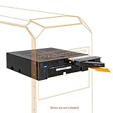 - Nimmt zwei 2,5” SATA/SAS 6GBit/s SSDs/HDDs bis 9,5mm Höhe und ein(e) 3,5" Gerät/HDD in einem 5,25" Schacht auf