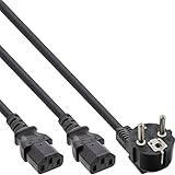 InLine 16657E Netz-Y-Kabel, 1x Schutzkontaktstecker zu 2x Kaltgerätestecker, 3m