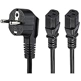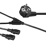 - EUR 3 pins mains Stecker an 2×IEC 320 C13 Y Splitter Stromkabel Geeignet für Kettle Lead Power Cable Cord, PC Monitore, Computer, TV, Drucker, Projektor;
