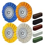 - Hochwertiges Material: Diese Trenn- und Polierscheiben bestehen aus Stoff unterschiedlicher Dichte: 1 blaues Luftweg-Polierrad (12-lagig) für hartes Polieren, 1 oranges Luftweg-Polierrad (12-lagig) für grobes Polieren, 1 gelbes Luftweg-Polierrad (12-lagig) für mittleres Polieren und 1 weißes Luftweg-Polierrad (12-lagig) für feines Polieren.