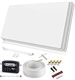 - Kompakte und unauffällige Bauweise (B: 517 x H: 277 x T: 58 mm) Empfangsleistung gleich eines 60cm Parabolspiegel. Geeignet für alle signale: SD, HD, Full HD, 4K UHD
