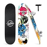 - 🎿【Stabiles Deck】: Das Skateboard besteht aus 7 Schichten hochwertigem Ahornholz und ist stabil und sicher. Es bietet ein perfektes Gleichgewicht zwischen Festigkeit und Gewicht. Es ist bruchfest und verfügt über eine hervorragende Elastizität. Es bietet Stabilität und Komfort für Ihr Fahrerlebnis. Zuverlässig für Anfänger und Fortgeschrittene.