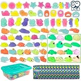 - PACKUNG MIT 80 SQUISHY KEINE DOPPELTEN - Diese 80 unterschiedlichen mochi squishy set in individuellen Beuteln, sind perfekt als Mitgebsel Kindergeburtstag Gastgeschenke. Es enthält eine große Vielfalt an Tieren, aber auch Dinosaurier, Einhörner, Sonnen und Sterne. Es gibt keine Duplikate, sondern 40 Squishies, jedes in zwei Farben. Sie werden in einer stabilen Plastikbox geliefert und sind daher auch ideal als Geschenke für Mädchen, Jungen und Kinder Geschenke