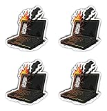 Aufkleber: 75 mm, 4 Stück - großer brennender Laptop IT Nerd Sticker Vinyl
