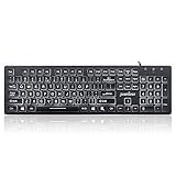 - Computer Tastatur mit Beleuchtung: dimmbare Hintergrundbeleuchtung, separate Multimedia Tasten zur einfachen Steuerung der Wiedergabe, FN Lock Funktion zum Tausch der Erst- und Zweitbelegung der F-Tasten