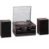- VINYL PLAYER IM RETRO-DESIGN: Dieser Plattenspieler im klassischen Retro-Look ist mehr als nur ein Record Player. Der Plattenspieler verfügt über eine Vielzahl von Funktionen, darunter einen Aux-Eingang, CD-Player, DAB Radio und einen USB- und Kopfhöreranschluss.