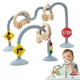 - [Lernspielzeug mit Verkehrsmotiv] Dieses ansprechende Saugnapfspielzeug für den Hochstuhl zeigt verspielte Verkehrszeichen wie Ampeln, Pfeile und Stoppschilder und enthält drei charmante Holzringe in Autoform. Wenn Babys die Ringe über die wellenförmige Bahn gleiten lassen, trainieren sie ihre Hand-Auge-Koordination, ihr räumliches Denken und ihre Fantasie – und das alles mit viel Spaß! Hergestellt aus 100 % lebensmittelechtem Silikon und glattem Naturholz, verbindet es frühe Verkehrserziehung mit sicherer, sensorischer Entdeckungsfreude und bietet eine ideale Kombination aus Lernen und Spielen.