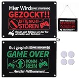 - Coole sachen für jungs:Das Schild hat ein doppelseitiges Design: Die Vorderseite zeigt "Hier Wird GEZOCKT!! BITTE NICHT STÖREN, Essen und Trinken vor der Tür abstellen und Tschüss!.....", die Rückseite "GAME OVER, KOMM REIN .....Herzlich Willkommen!.....". Hängen Sie dieses coole Accessoire an der Tür oder einer sichtbaren Stelle auf, um unerwünschte Störungen beim Zocken zu vermeiden.