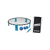 - Komplettes Roundnet Netz (Ø 90cm, ca. 20cm hoch), 1 Trainingsball (Ø11cm), 2 Wettkampfbälle (Ø9cm), Ballpumpe mit Nadel und Netztasche. Die Nadel der Ballpumpe befindet sich im Handgriff