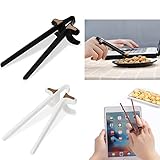 - Stecken Sie einfach den Zeigefinger und den Mittelfinger in das Öffnungsloch der Fingerklemme Essstäbchen, und platzieren Sie die Stäbchen über den Fingern, Sie können die Essstäbchen leicht kontrollieren, um das Essen zu klemmen und die Finger sauber und ölfrei zu halten.
