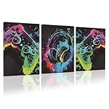 - 【Gaming Leinwand Bilder】: Dieser lebendige Graffiti Gaming Leinwanddruck in leuchtenden Farben strahlt Energie aus. Mit seinem Design aus Gamepad und Kopfhörern verleiht er jedem Raum einen Hauch von Spaß