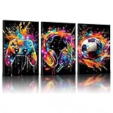 - 【3-teiliges Gaming Bild Set】: Diese Kollektion umfasst drei gaming poster mit rahmen (Controller, Fußball, Kopfhörer), die sich perfekt für verschiedene Einrichtungsstile eignen