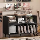 - Ausreichender Stauraum: Dieses Plattenspieler-Regal mit Vinylaufbewahrung verfügt über 6 breite Fächer, die leicht 450 verschiedene Stile von Vinylplatten aufnehmen können. Wir haben mehrere einzigartige offene Ausstellungsbereiche für Ihr Plattenregal entworfen, die es Ihnen ermöglichen, die benötigten Vinylplatten und Musikrequisiten frei auszuwählen. Die geräumige Oberseite des Turntable-Stands kann verschiedene Größen von Plattenspielern aufnehmen und erfüllt die Bedürfnisse aller Vinyl-Platten-Enthusiasten.
