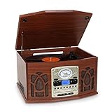 - VINYL PLAYER IM RETRO-DESIGN: Dieser Plattenspieler im klassischen Retro-Look ist mehr als nur ein Record Player. Der Plattenspieler verfügt über eine Vielzahl von Funktionen, darunter einen Aux-Eingang, CD-Player, DAB Radio und einen USB- und Kopfhöreranschluss.