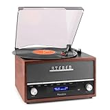 - Vielseitige Kompaktanlage: Plattenspieler mit 33/45/78 U/Min., DAB+/FM-Radio, CD-Player, Kassettendeck und MP3-Unterstützung – genießen Sie Musik von Vinyl, CDs, Kassetten oder digitalen Dateien in hoher Klangqualität.