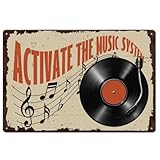 - Metallschild Aus Blech: Das Blechschild zeigt den Plattenspieler und Noten auf dem Notensystem sowie den motivierenden Spruch "Aktiviere das Musiksystem". Lebendiges, künstlerisches Design verleiht musikalischen Charme und passt in Musikliebhaber-Räume, Studios oder kreative Dekorationsbereiche.
