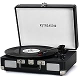 - Retrolife INDIVIDUAL SUITCASE RECORD PLAYER: Eine gelungene Kombination aus modernen und Vintage-Elementen. Schwarzer klassischer PU-Lederausblick mit Retro-Bronze-Metallschrauben und Netzen, Sie können es überall mit seinem soliden Griff nehmen. Seien Sie bereit, Ihre eigenen Musik-Erinnerungen zu schaffen