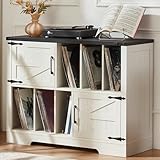 - Landhausstil-Charme mit Retro-Atmosphäre: In Vintage Landhausstil gestaltet, verfügt dieser Plattenspielerschrank über ein rustikales Holzmaserungsfinish, ergänzt durch Scheunentürelemente und vintage Metallakzente. Er dient nicht nur als Lagerlösung, sondern auch als ansprechende rustikale Deko, die nahtlos in Ihren bestehenden Möbelstil einfügt – schön und praktisch zugleich. Er ist die perfekte Ergänzung für Musikzimmer und Wohnzimmer.