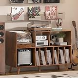 - Ausreichender Stauraum: Dieses Plattenspieler-Regal mit Vinylaufbewahrung verfügt über 6 breite Fächer, die leicht 450 verschiedene Stile von Vinylplatten aufnehmen können. Wir haben mehrere einzigartige offene Ausstellungsbereiche für Ihr Plattenregal entworfen, die es Ihnen ermöglichen, die benötigten Vinylplatten und Musikrequisiten frei auszuwählen. Die geräumige Oberseite des Turntable-Stands kann verschiedene Größen von Plattenspielern aufnehmen und erfüllt die Bedürfnisse aller Vinyl-Platten-Enthusiasten.