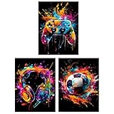 - 【Einzigartiges und Kreatives Design】Ein Fußball, ein Gaming-Headset und ein Gamecontroller vereinen sich in leuchtenden Neonfarben zu einem auffälligen Kunstwerk. Dieser lebendige Farbverlauf verkörpert die Leidenschaft für Sport und Gaming und bringt Energie in Ihren Raum