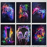 - GERAHMTE WANDKUNST: Dieses 3er-Set Wandkunstposter ist mit einem Gamecontroller, Kopfhörern und brennenden bunten Pigmenten ausgestattet und verleiht Ihrem Raum Vitalität und Spielatmosphäre. Geeignet für das Schlafzimmer, das Spielzimmer, den Schlafsaal oder jeden Raum, der Vitalität benötigt.