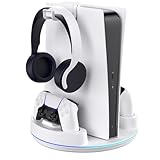 - All-In-One PS5 Zubehör für Alle PS5 Slim/PS5 Digital Edition & PS5 Disc Edition Konsole: Robuste PS5 Ständer + Stark Kühl PS5 Lüfter + Zwei PS5 Controller Ladestation mit LED Anzeigen+ Headset Halterung + 15 Spiele Lagerung + 23cm Typ C-C Kabel + 4 Rutschfeste EVA-Pads +1 USB-Anschluss+Lüfter Taste. Sparen Sie Platz und halten Sie Ihren Tisch aufgeräumt, kühlen Sie die PS5 Konsolen kraftvoll ab, Coole RGB-Lichtspiel-Atmosphäre, eine großartige Geschenkoption für PS5-Gamer.