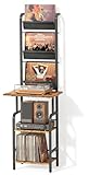 - 【VIEL STAURAUM】Platzieren Sie Ihren Plattenspieler auf der Oberseite des Nachttisches; die 2 offenen Ablagen darunter und der rechte Schallplattenständer halten bis zu 140 Alben. Organisieren Sie mühelos Ihre Sammlung!