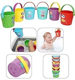 - ZÄHLEN UND STAPELN : Jeder Eimer ist von 1 bis 5 nummeriert. Beim Stapeln in der richtigen Reihenfolge wird spielerisch gelernt, zu zählen und Zahlen zu lesen!